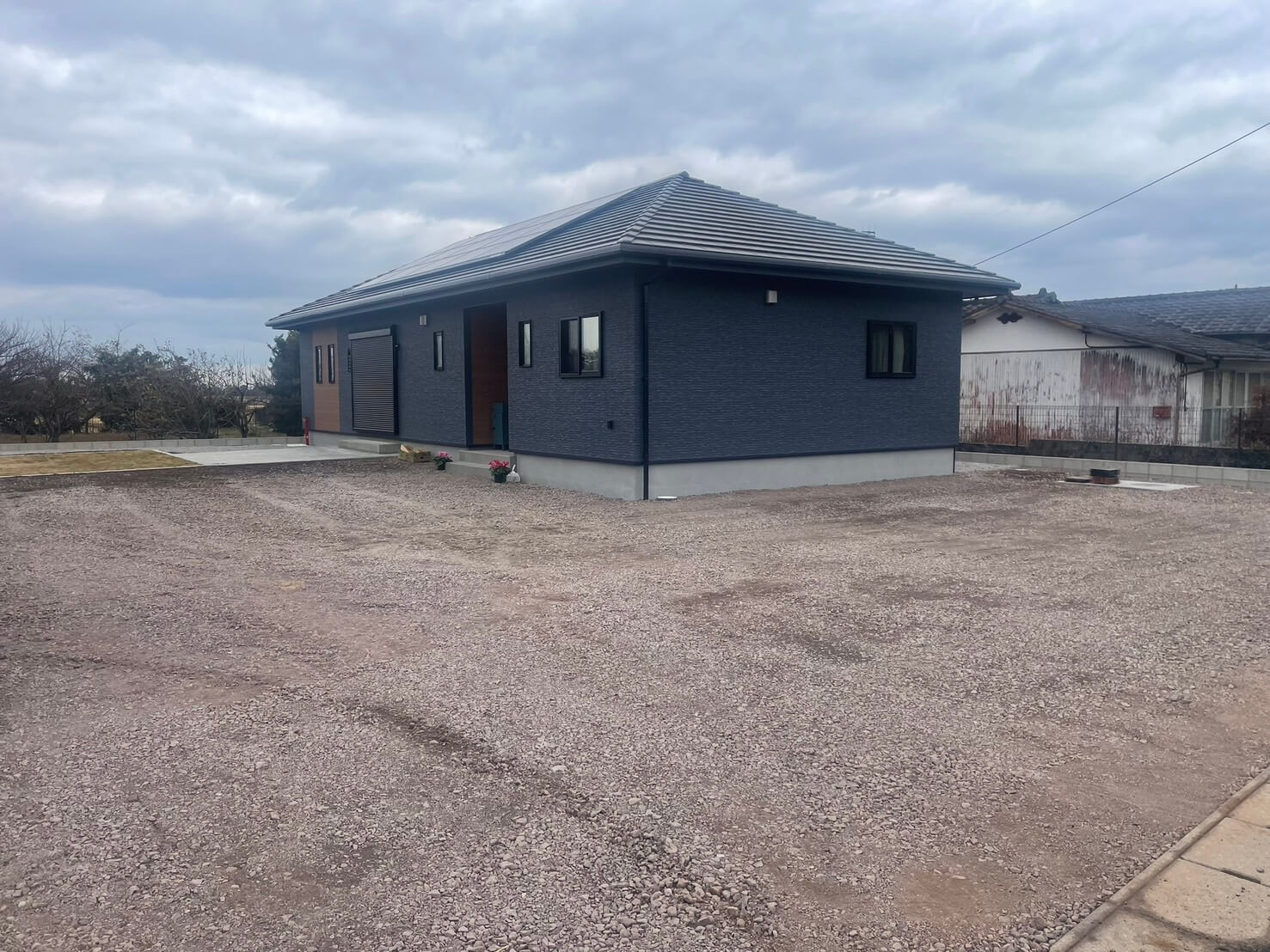 建屋周り砂利、駐車場は砂利の補足と整地を行いました。