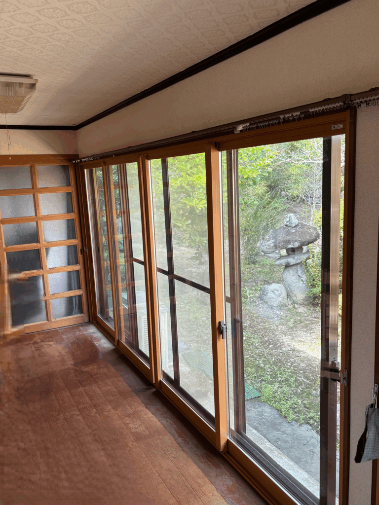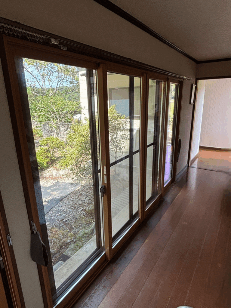 その他4ヶ所は内窓を設置しました。1Fは北側に2間(約W3700)と9尺(約W2700)の大きいサイズのサッシが並んで建っているので、冬になると室内がとても寒く感じていました。2Fは南側に大きなサッシと東側に窓が並んで建っている為、冬は室内が冷えやすく、夏は日差しが強く差し込みとても暑く感じていました。