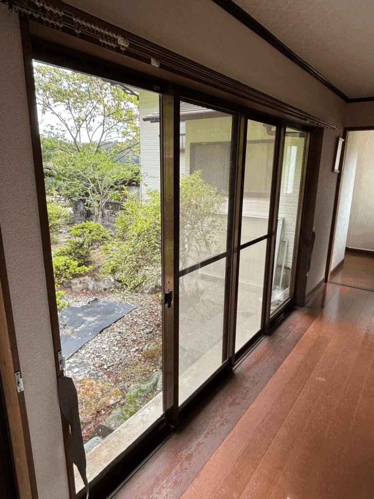 入隅になった所だけは、サッシが古く網戸も不具合があった為、新規サッシを取り付けました。外観が美しくなり、網戸もスムーズに開閉できるようになったので快適になりました。