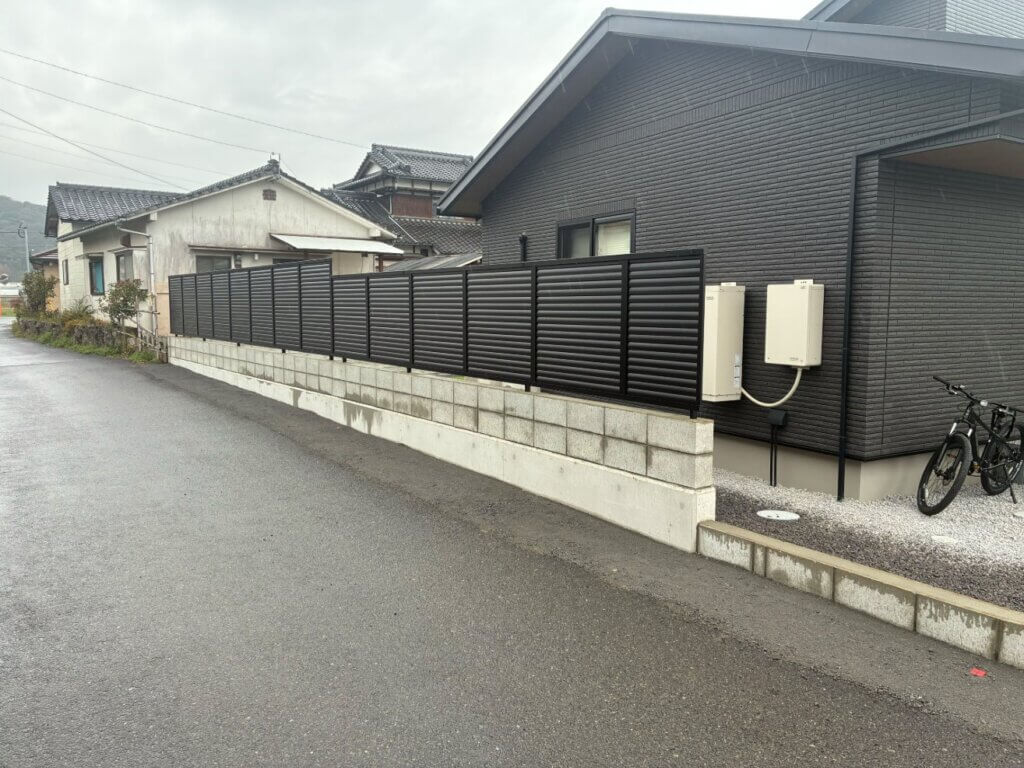 道路側は人と車の通りが気になるとのご要望があり、ブロック+目隠しフェンスを段違いでご提案。