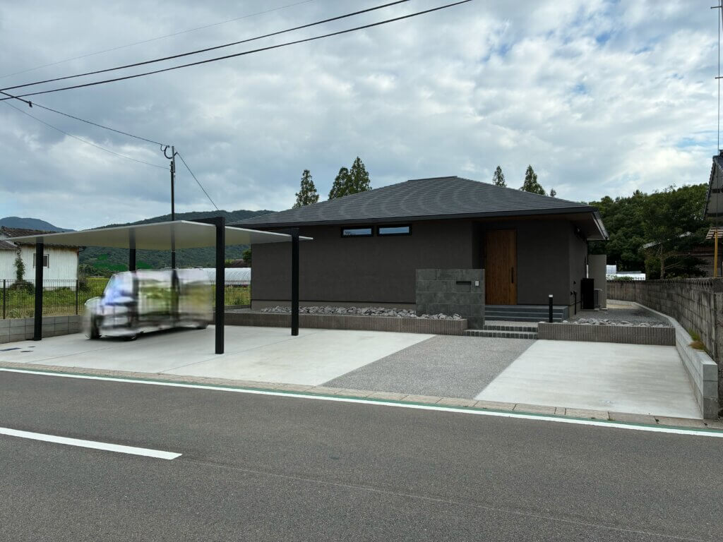 駐車場は全てコンクリートにしてアプローチの通りをコンクリート洗い出しでアクセントをつけました。