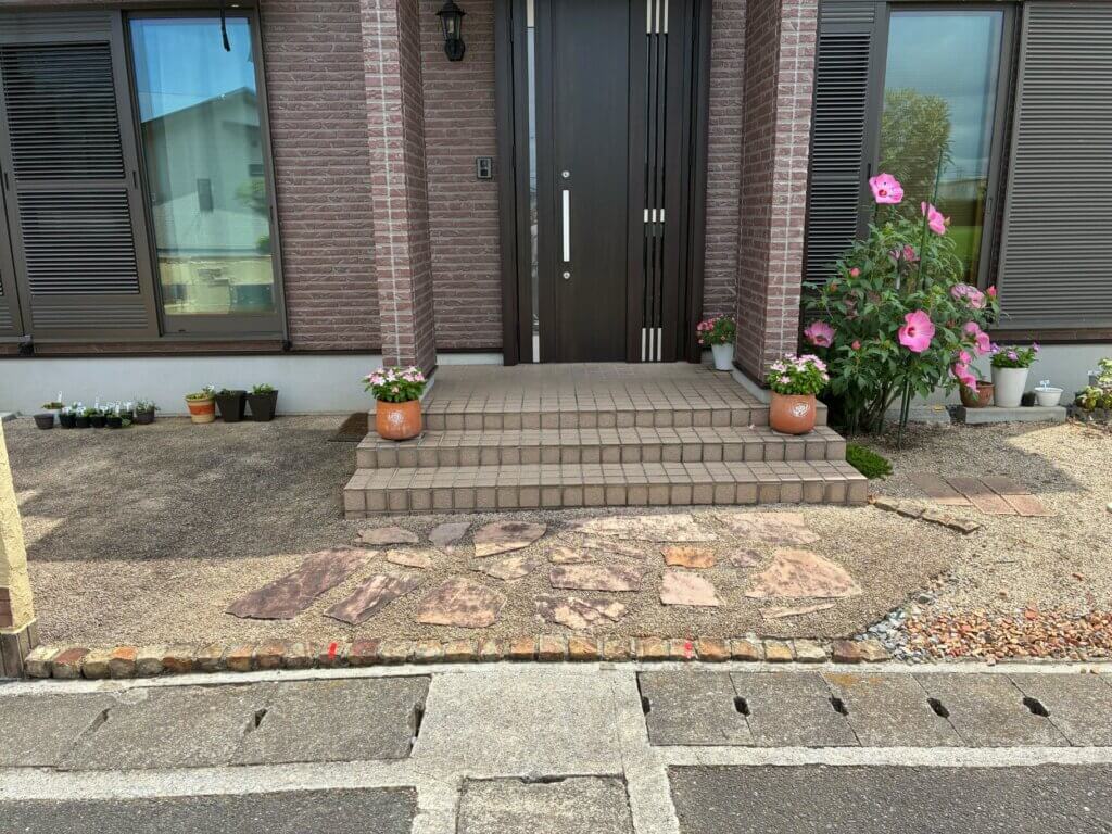 玄関ポーチは、タイル張替え、拡幅、歩行補助手すりアーキレール設置