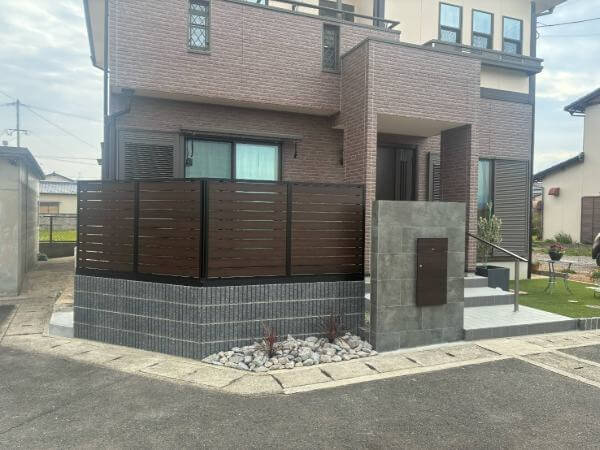 塗り壁から化粧ブロック+目隠しフェンスへ改修しました。